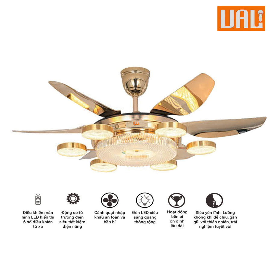 Quạt trần UAL-LX61-VBMB là một sản phẩm đẳng cấp, kết hợp giữa thiết kế sang trọng và công nghệ tiên tiến, mang lại không gian sống hiện đại và tiện nghi. Với màu sắc vàng bóng ABS cùng 6 chao đèn, sản phẩm này không chỉ đóng vai trò như một chiếc quạt trần thông thường mà còn là một điểm nhấn nội thất tinh tế, góp phần tôn lên vẻ đẹp của ngôi nhà. Hãy cùng tìm hiểu chi tiết về quạt trần UAL-LX61-VBMB để hiểu rõ hơn về sản phẩm này.